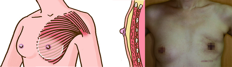 ●一次一期再建: 乳癌手術の際、同時にインプラントを用いて一回で再建終了