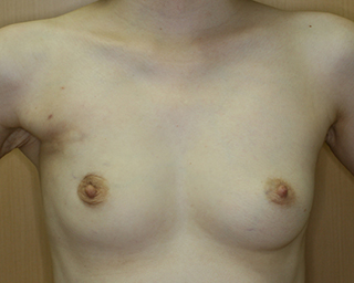 ●二次一期再建: 乳癌手術の後、エキスパンダーを用いずに、インプラントを用いて再建
