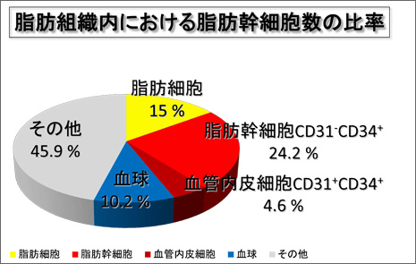 脂肪組織中には、その幹となる脂肪幹細胞が意外と数多く存在します。骨や軟骨にも分化できる、多能性を持った細胞です。この脂肪幹細胞が脂肪組織の再構成に関与しており、換言すれば脂肪組織のメンテナンス役を担っています。
