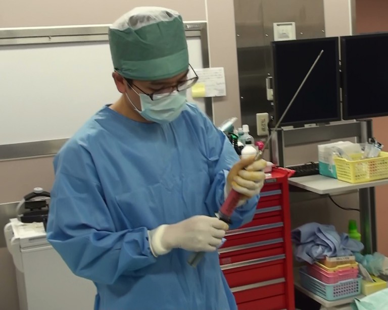 その後、遠心分離器することで移植用の脂肪を用意します。