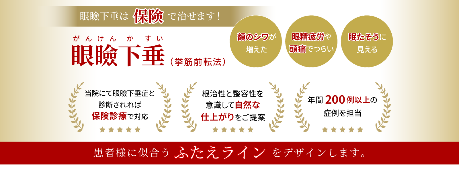 - 加齢: 年齢変化によって眼瞼挙筋がゆるみ